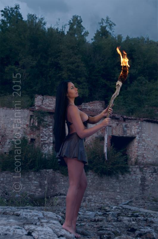Ady Descarada wear a Leather handcrafted sexy dress and a torch