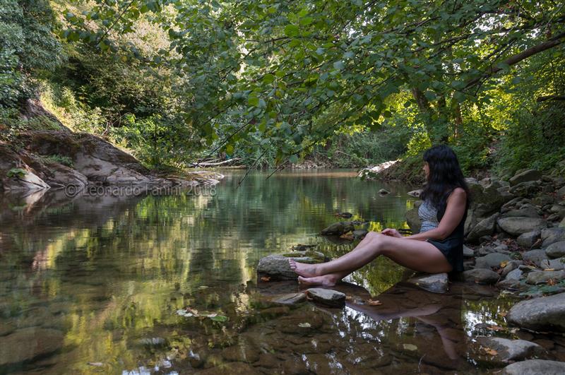 Avevamo concordato di fare un servizio fotografico glamour lungo un ruscello, ma poi la serenità del luogo che ho trovato ci ha portato a uno stile molto diverso che potrei descrivere più come un ritratto ambientale.
