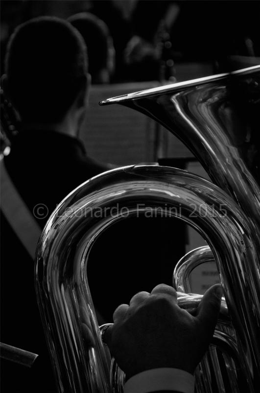 La particolare disposizione dei due suonatori in fila, con le teste allineate, ha completato al meglio l''inquadratura per il mio soggetto