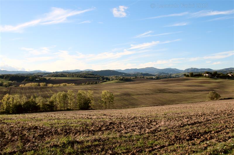 La luce del tardo pomeriggio, la più bella per esaltare le onde del terreno e rendere magico ogni ambiente. Foto realizzata vicino a Cafaggiolo, affascinante castello che fu della famiglia Medici