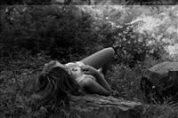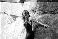 Desideria - così glam sdraiata sulla parete della cava, con un tubino nero